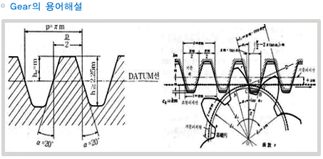 | 1)M (Module) : GearÀÇ ÀÕ»¡Å©±â¸¦ ³ªÅ¸³»´Â ¿ë¾î 2)h (Whole Depth) : îïöÍÀÇ ³ôÀÌ 3)hf (Dedendum) : öÍêªÀÇ ³ôÀÌ(±â¾îÀÇ PCD¸¦ ±âÁØÇÏ¿© ÇϺαîÁöÀÇ ±æÀÌ) 4)hk (Addendum) : öÍØÇÀÇ ³ôÀÌ(±â¾îÀÇ PCD¸¦ ±âÁØÇÏ¿© »óºÎ±îÁöÀÇ ±æÀÌ) 5)C (Clearance) : ±â¾îÀÇ öͳ¡°ú »ó´ë±â¾î öÍæ±îÁöÀÇ Æ´»õ ..........................(¿øÈ°ÇÑ È¸ÀüÀ» À§Çؼ ¿©À¯ °£°ÝÀ» µÒ) 6)He : À¯È¿ Åé´Ï³ôÀÌ(½ÇÁúÀûÀÎ µ¿·ÂÀü´ÞÀÌ µÇ´Â ÀÕ»¡³ôÀÌ) 7) £À0 (Pressure Angle) : ¾Ð·Â°¢ (P.C.D¼±¿¡¼ÀÇ °¢µµ) 8)S0 (Tooth Thickness) : ¿øÈ£Åé´Ï µÎ²² 9)t0 (Pitch) : ÇÑ °³ÀÇ öÍ¿Í ´Ù¸¥ öÍ¿ÍÀÇ °£°Ý 10)dk (Out Diameter) : öÍêª ¿øÁö¸§(±â¾îÀÇ ¿Ü°æ) 11)d0 (Pitch Circle Diameter) : ÇÇÄ¡ ¿øÁö¸§(±â¾îÀÕ»¡ÀÇ Á߽ɰæ) 12)dr (Base Circle Diameter) : ±âÃÊ ¿øÁö¸§(±â¾îÀÇ ÀÌ·ÐÀûÀÎ Ä¡Àú°æ) 13)¹é·¡½¬ (Back Lash) : ±â¾îÀÇ È¸ÀüÀÌ ¿øÈ°ÇÏ°Ô µÇµµ·Ï ±â¾î¿Í ±â¾î°¡ ..................................¸Â¹°¸±¶§ÀÇ Æ´»õ¸¦ ¸»ÇÔ 14) ¾ð´õÄÆ ( Under Cut ) : ±â¾î¸¦ °¡°øÇÒ¶§ ⼺ÀÌ µÇ¸é¼ °ø±¸°¡ ±â¾îÀÇ öͻѸ®¸¦ ....................................°¦¾Æ¸Ô´Â Çö»ó 15) Å©¶ó¿ì´× (Crowning) : ¼ÒÀ½µîÀ» À§ÇÏ¿© ±â¾îÀÇ ¹è¸éÀ» º¼·ÏÇÏ°Ô ÇÏ´Â ¹æ¹ý 16) Á߽ɰŸ® ( Center Distance) : ±â¾î°¡ Á¤»óÀûÀ¸·Î ¸Â¹°·ÈÀ»¶§ ±â¾î¿Í ±â¾î°£ÀÇ ...............................................Á߽ɼ¸® |